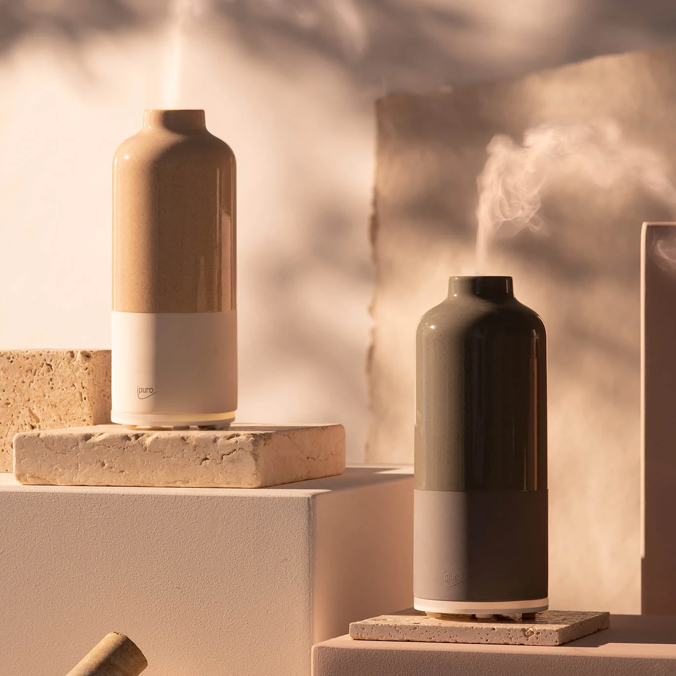Innovativ, berührend, persönlich – Der handglasierte ipuro AIR SONIC Aroma Bottle Diffuser in angesagter zweifarbiger Keramikoptik.