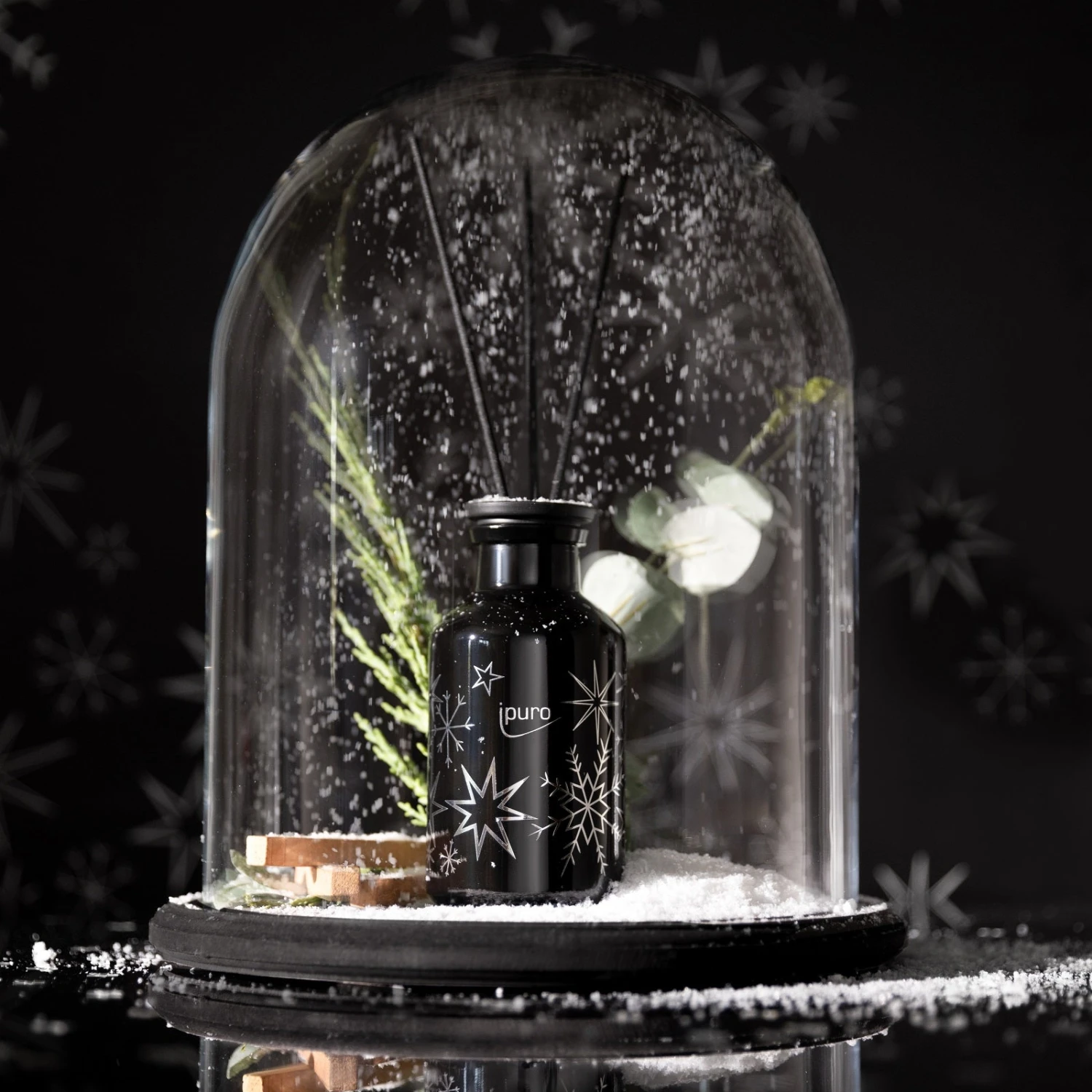 Die Magie des ersten Neuschnees, eine frische, verzaubernde Brise liegt in der Luft. Grüne, frische Noten erinnern an die Reinheit von Schnee, während Eukalyptus und Thymian für klare, belebende Luft sorgen. Warme, holzige Nuancen und eine dezente Süße sorgen für eine warme Umarmung und wohlige Geborgenheit an kalten Tagen.